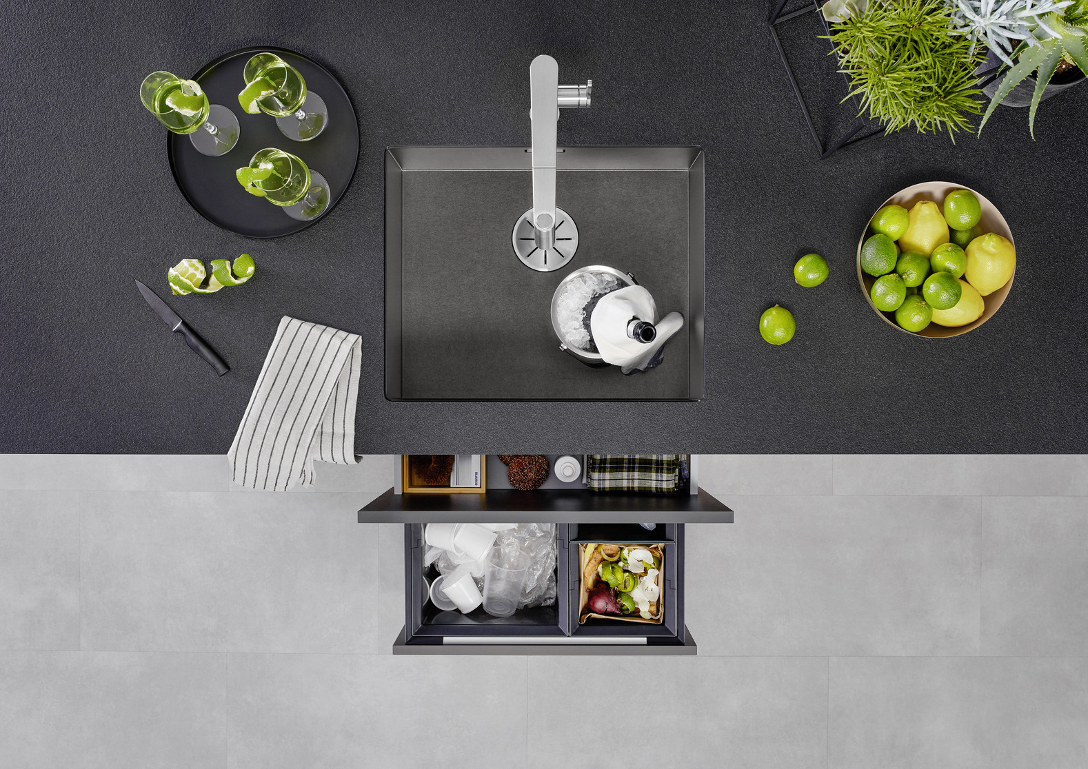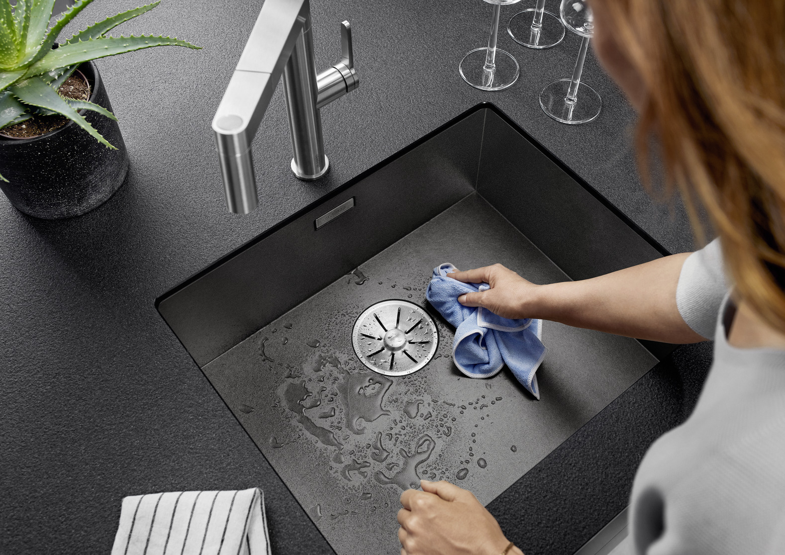 Мойка Blanco Zerox 500-U Dark Steel - мойка для кухни премиум класса с нулевым радиусом закругления внутренних углов, выполнена из нержавеющей стали толщиной 1.1 мм и подходит для установки в кухонный шкаф шириной 60 см. Глубина чаши мойки составляет 18 см. Модель Zerox 500-U Dark Steel 526243 производится на заводе Blanco в Германии и на нее распространяется официальная гарантия магазина в течение 1 года.